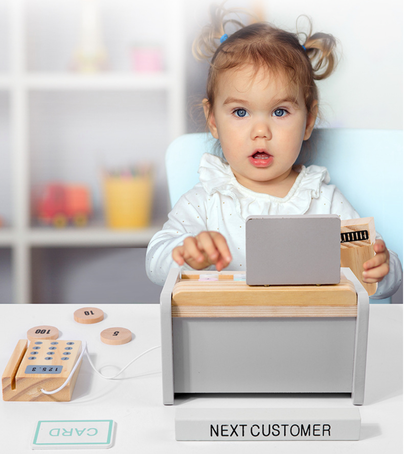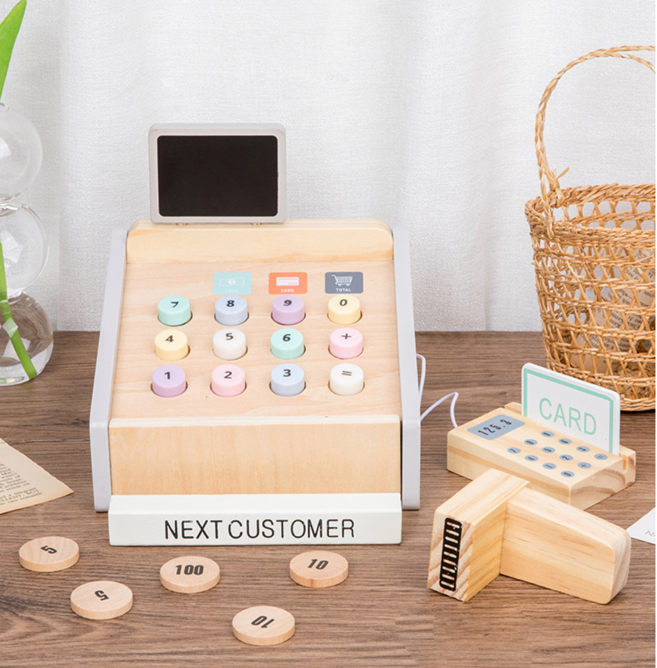 Turn pretend play into meaningful learning with our Wooden Learning Cash Register – a beautifully crafted toy that combines creativity, math skills, and real-world understanding. Inspired by Montessori principles of hands-on, purposeful play, this set encourages children to explore counting, money concepts, and social interaction through imaginative shopkeeping fun.